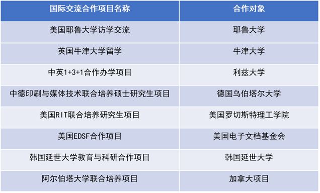 印刷与包装系国际合作办学一览表