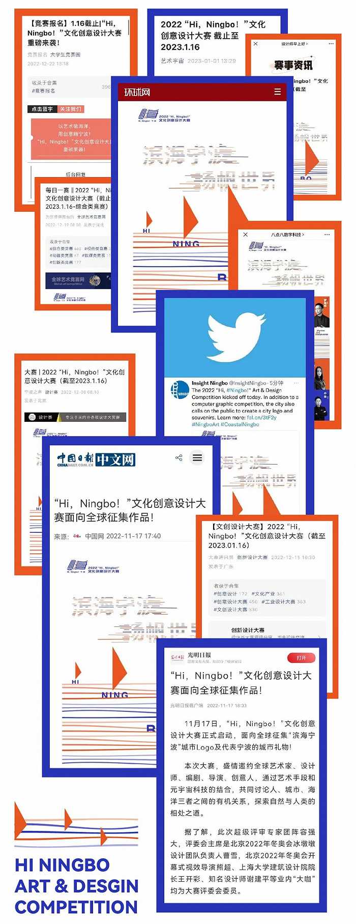 即日起-2023年3月17日,每人每天拥有五次投票机会,为你喜欢的作品增添点赞值网络投票票数最高的作品将收获“最佳人气奖”,获得荣誉证书和一万元现金奖励进入评审团终审的作品,面对的是全球评审团的检阅,它们是否准确表达和传播宁波现代化滨海城市精神和价值观?是否具有让人眼前一亮的视觉效果?又是否100%原创?还有金、银、铜奖以及独具吸引力的奖金和证书究竟花落谁家?我们拭目以待。
