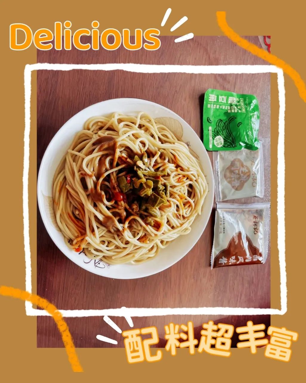面条甄选优质小麦面条爽滑筋道、黄而油润让人食欲大开面饼非油炸,做好后拌上调料酱香满溢,醇香浓郁“哧溜哧溜”~顺滑润口,香!