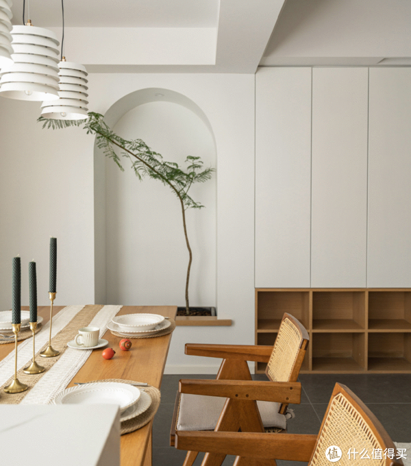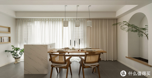 利用南阳台打造的餐厅,除了让全家人有了一块极度松弛自由的用餐区之外,也可随时欣赏到窗外的风景,让视野更加开阔同时,中岛台的存在,也进一步丰富了餐厅的功能性不管是日常收纳,还是当作备餐台使用,都非常方便。