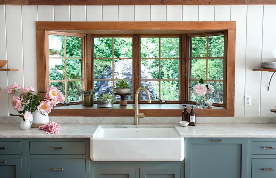 浅蓝绿色橱柜,图片来自:Heidis Bridge蓝绿色仿佛是「新鲜空气」 这种宁静的色调让我想起海洋和天空,而且它不像其他一些浅蓝色那样显得稚嫩这种颜色是受历史上法国和英国壁纸的启发,这是一种经典的雾状淡蓝色,。