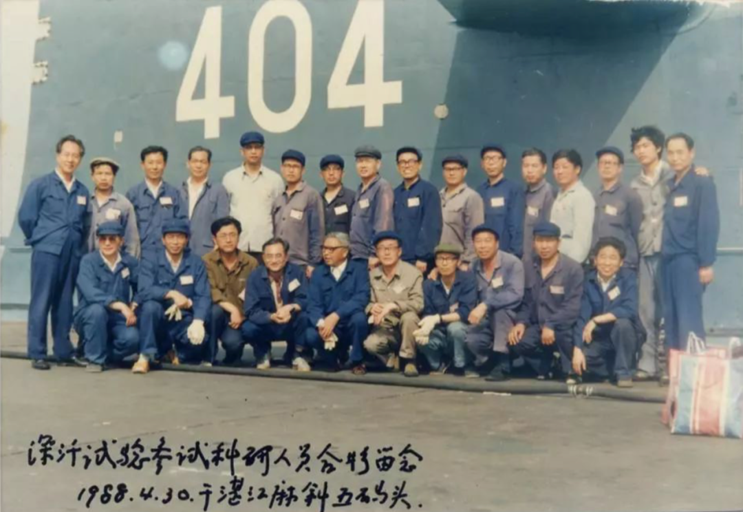 图:黄旭华(后排左一)同参与深潜试验的科研人员合影 核潜艇总设计师亲自参与深潜,这在世界上尚无先例单位领导得知后,劝黄旭华不要亲自深潜,但他却坚持参加他表示:“深潜不是冒险,我对它有信心而且万一还有哪个环节疏漏了,我在下面可以及时协助艇长判断和处置”。