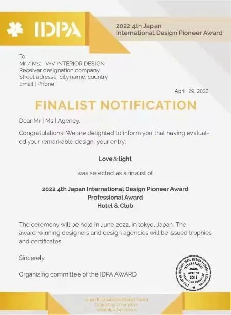 日本IDPA AWARD国际先锋设计大奖,是面向全球征集最具国际行业知名度和行业影响力的设计师和设计机构的设计作品的国际设计大奖通过IDPA AWARD国际先锋设计大奖,关注世界最前沿的设计文化和设计理念,加速文化创意及设计产业全球化发展的进程,实现世界各国间的交流合作、协同发展、合作共赢的发展愿景。