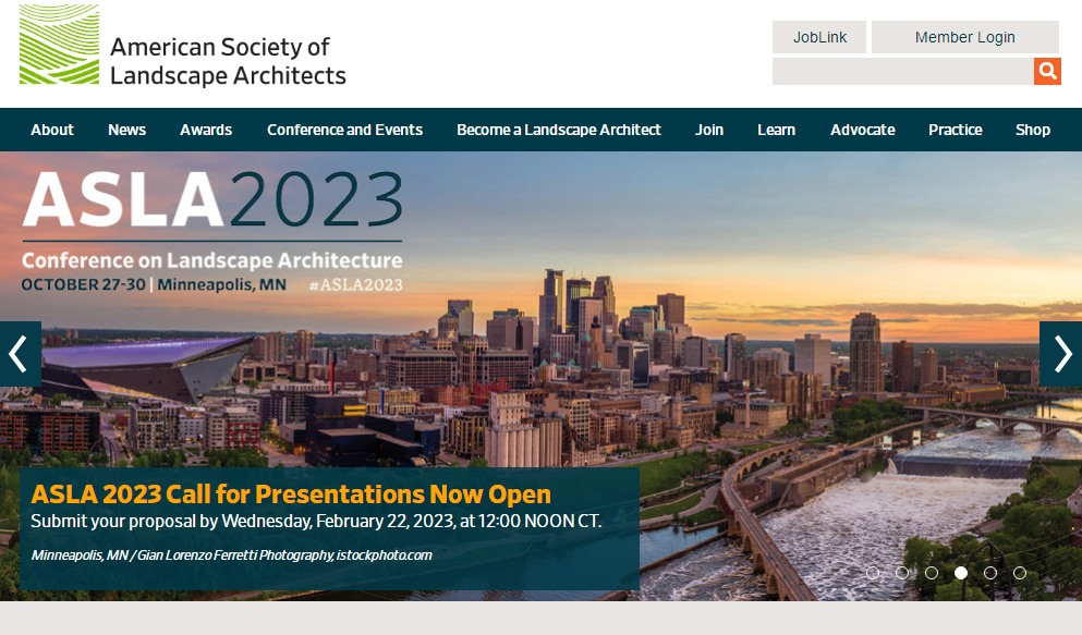 1. ASLA(美国景观建筑师协会)官网:https://www.asla.org/该网站提供行业最新的新闻、研究、活动、奖项等信息,并且包括有关景观建筑师的教育、职业发展和实践的资源2. Landscape Architecture Magazine(美国景观建筑师杂志)官网。