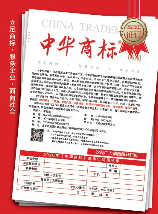 “标准化整形”。作者单位:广州商标审查协作中心2020年《中华商标》杂志正火热征订中,欢迎广大读者踊跃订阅↓↓↓